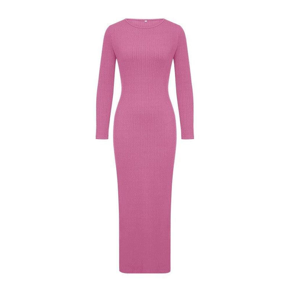 Women's Solid Crew Neck Slim Fit Maxi Dress