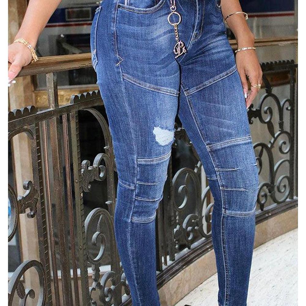 - Medium Blue Distressed Skinny jeans with backing Underneath