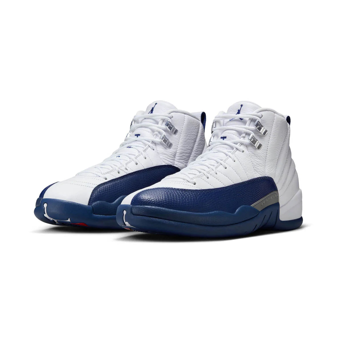 Own a piece of basketball history with the 2025 return of the Air Jordan 12 Retro "French Blue." This highly anticipated retro stays loyal to the original 2004 color-way, featuring a crisp white, tumbled leather upper with radiating stitch lines that pay homage to the Japanese Rising Sun flag.
