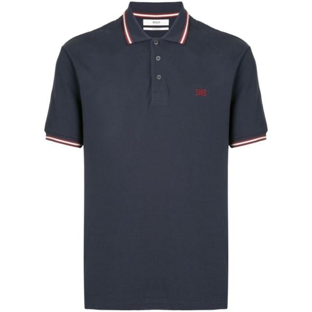 Featuring icon Bally Stripe detailing at the cuffs and collar, this men's polo shirt in navy features an embroidered B-Chain detail.