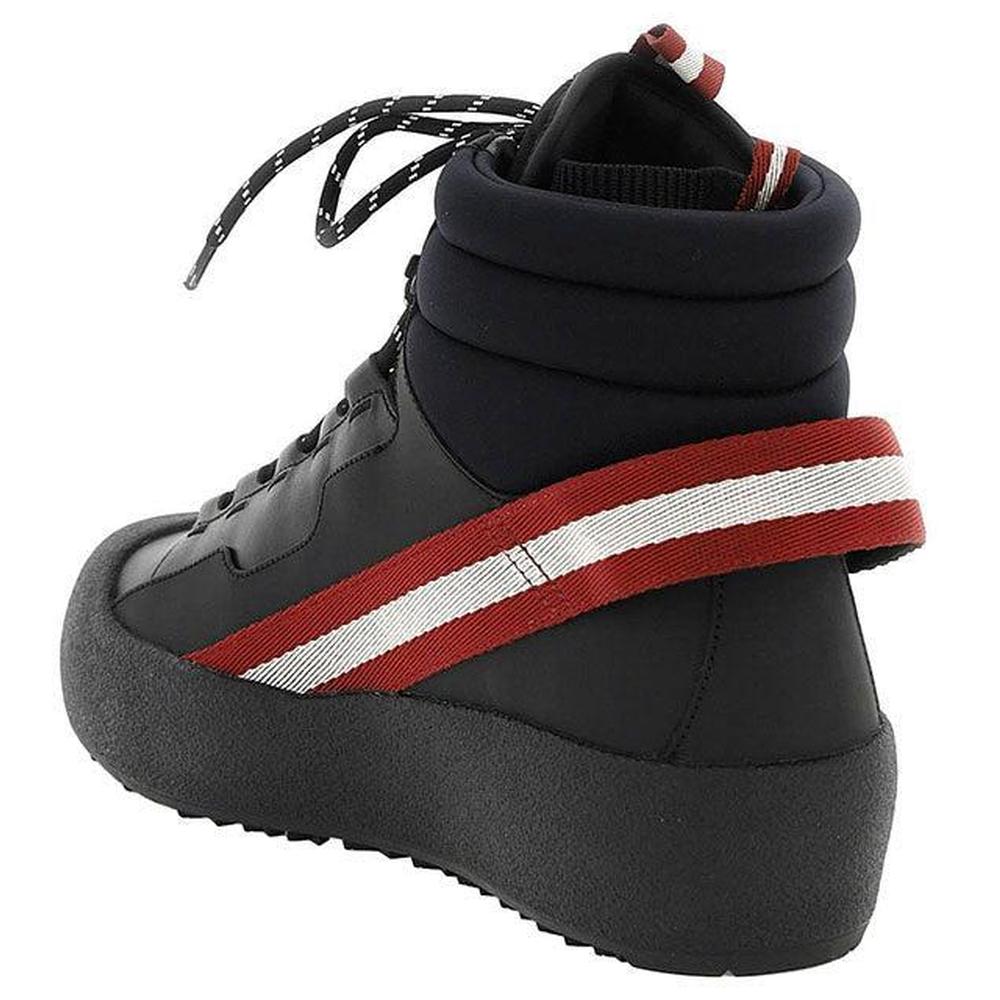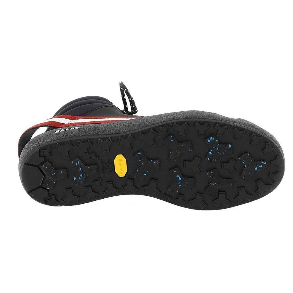 The Bally Curling collection was first introduced in 1950 and continues to build upon years of craftsmanship whilst implementing a contemporary aesthetic and the latest technology. The Clyde boot is made from black rubber-coated and plain leather, with a detachable sock lining. A wraparound Bally Stripe provides a distinctive touch. The rubber sole features Vibram® Arctic Grip technology engineered to provide maximum grip on cold, iced or snowy surfaces.