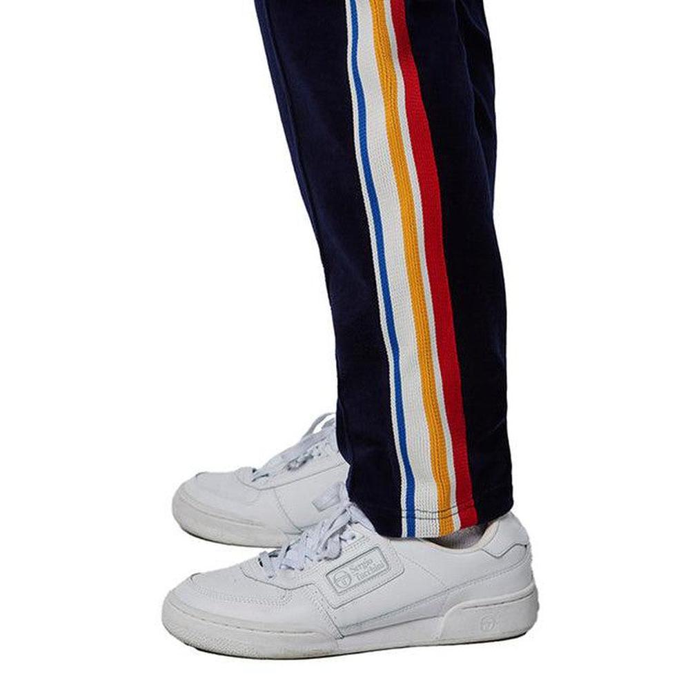 Crafted from premium velour for a luxurious feel, the Goran Track Pant Archivio features a comfortable rib-knit waistband with a gold metal-tipped drawstring and our iconic 'ST' monogram logo embroidered in metallic gold thread at the left thigh. Part of our Archivio collection—celebrating classic designs from the archive—this elevated track pant is finished with multicolored stripe taping inspired by a retro Tacchini polo worn by Goran Ivanisevic at the 1996 US Open.