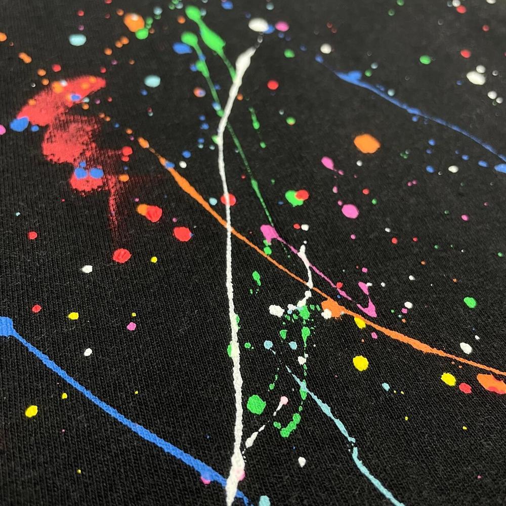 Guzman original "Beetle Juice" artwork, hand-painted glitched Haculla across the back and artisanal hand-painted finish.