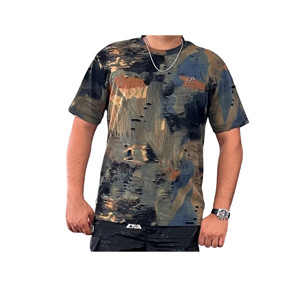 The Recon Box Tee is cut from premium heavyweight cotton with a sculpted, oversized silhouette. Distressed by design and reinforced beneath, its deconstructed finish reveals a layered complexity. Presented in a triad of tonal palettes — Desert, Jungle, and Rust — each hue reflects a narrative of terrain, tension, and texture.