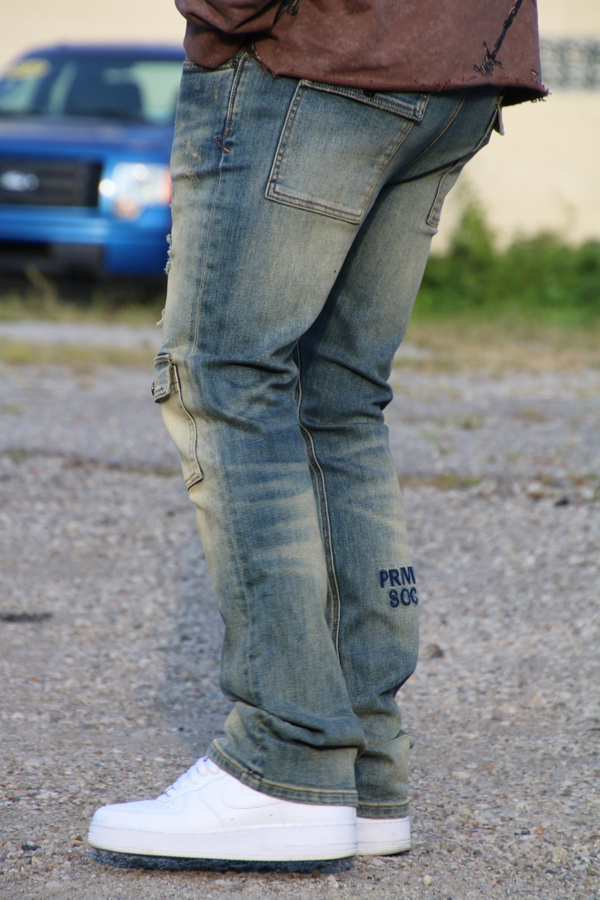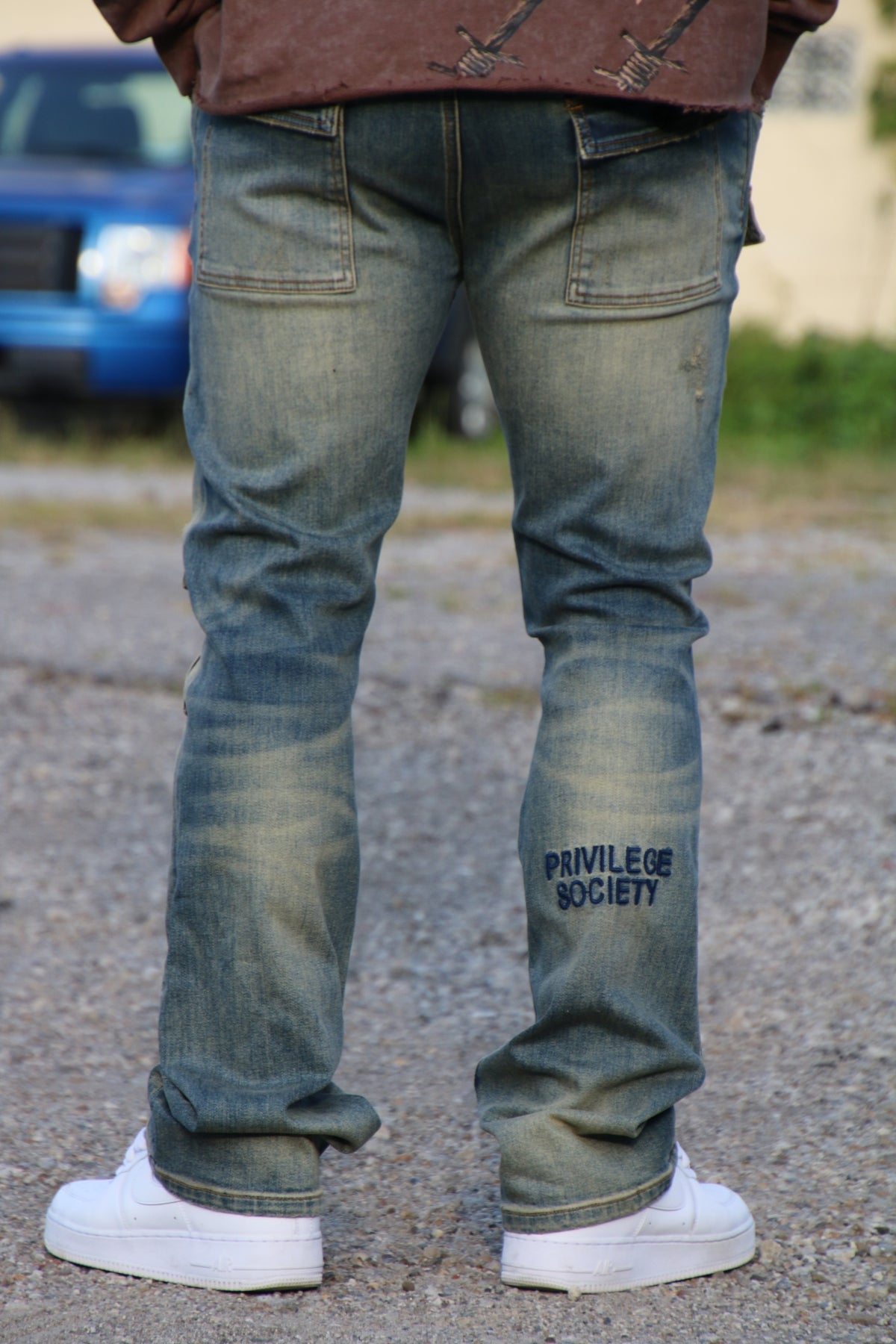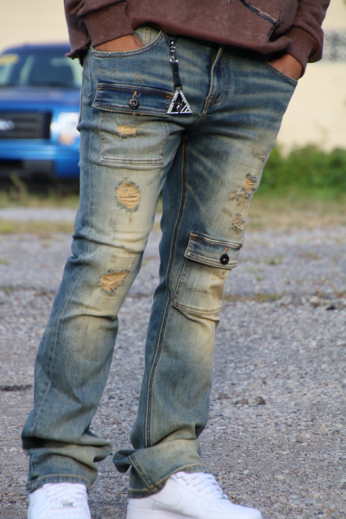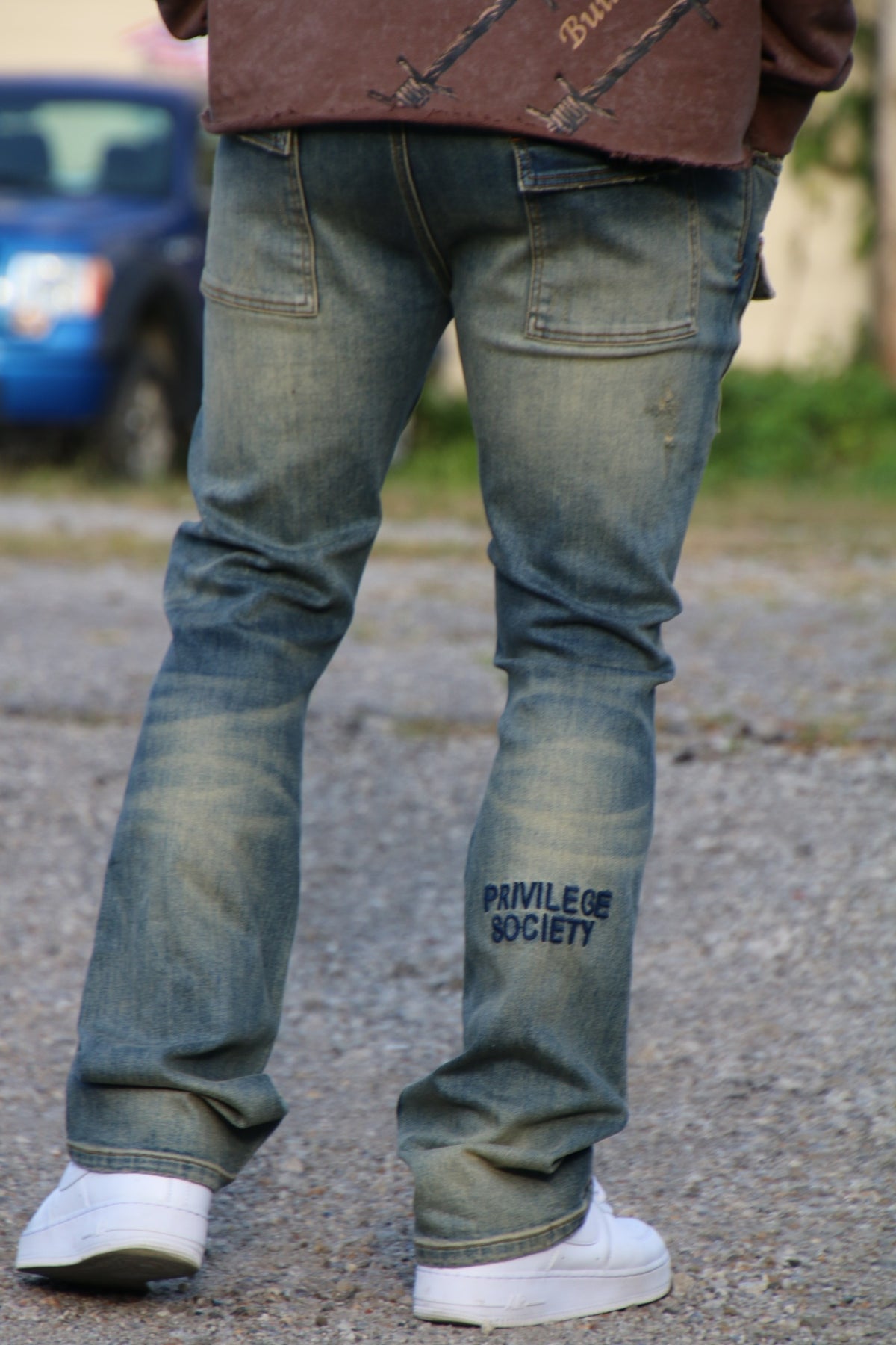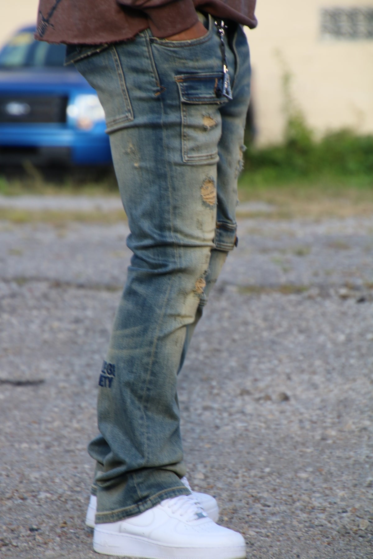 Crafted for the true denim connoisseur, the Sahara Desert Skinny Flare Jean features a subtle sand-wash finish and a refined cargo-pocket design that speaks to both style and sophistication. With intricate navy embroidered details on the calf and thoughtfully placed pockets for a modern edge, these jeans blend high-end craftsmanship with a touch of adventure. Perfect for those who appreciate a luxurious yet effortlessly edgy aesthetic.