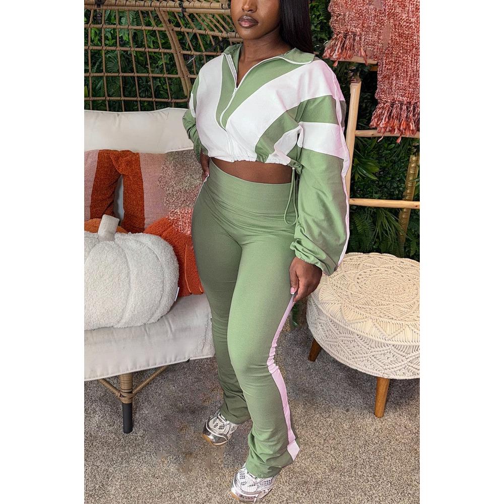 Women's Colorblock Zipper Sweatshirt and pants Set