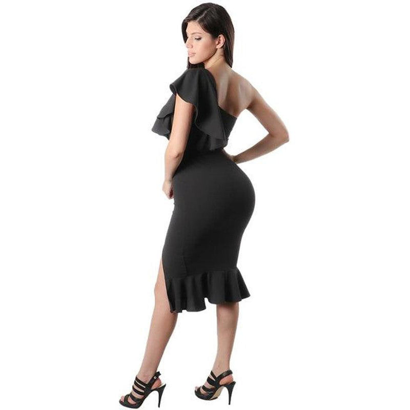 One Shoulder Bodycon Dress with Ruffle Layer Accent