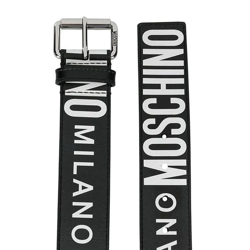 Moschino Leather Belt With All Over Logo Silver Buckle