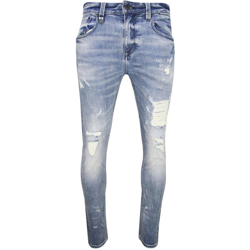 *Stone Wash Distressed Blue Jean With Denim Backing Underneath